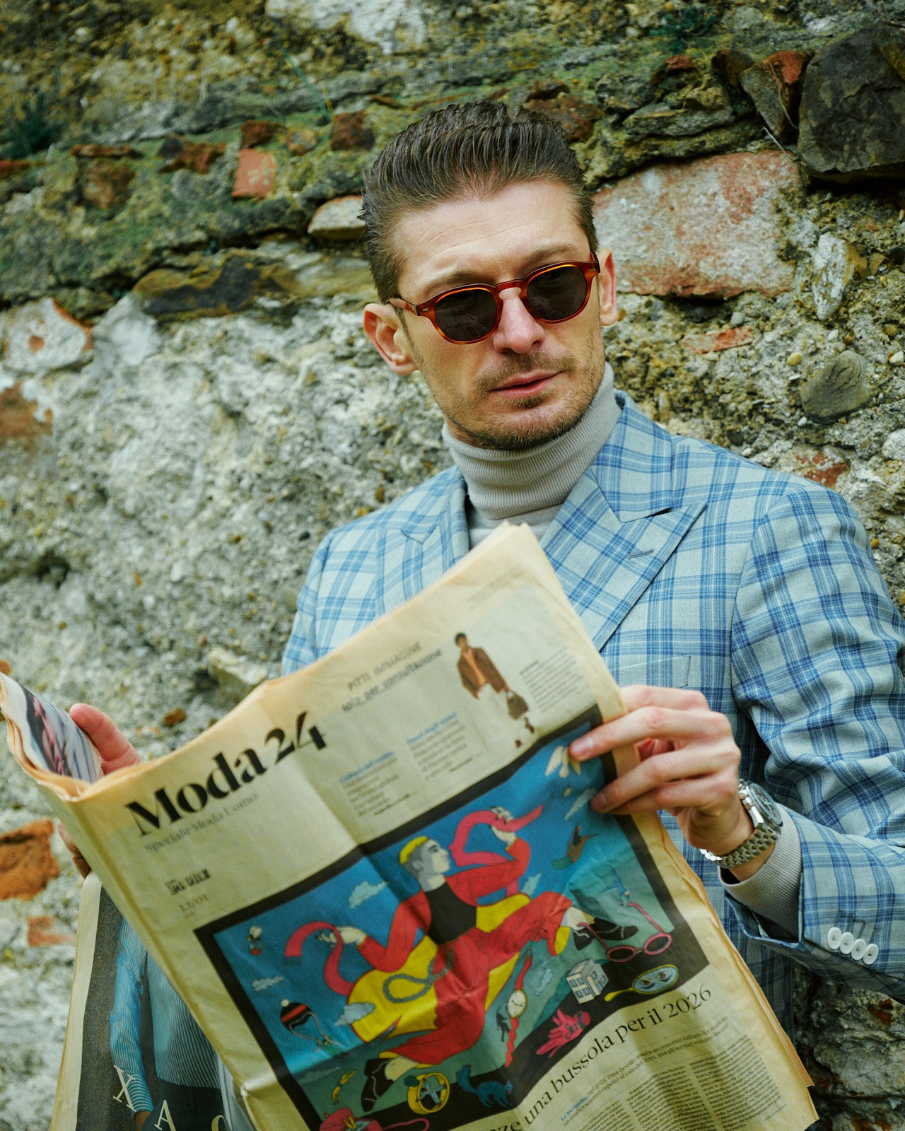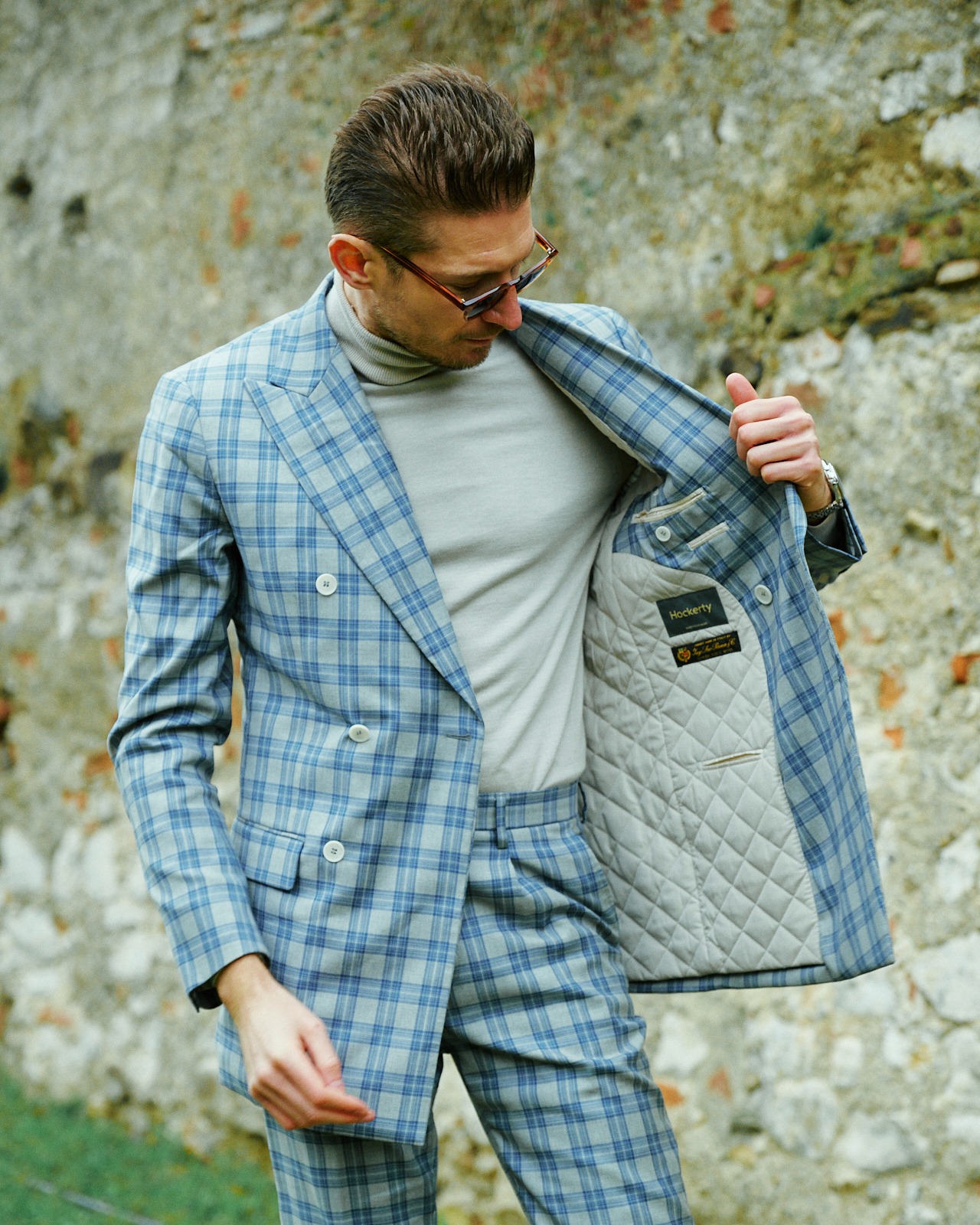 | Una proposta sofisticata con un’aria contemporanea. Il completo a doppio petto a quadri blu chiaro aggiunge dinamismo visivo e struttura, mentre il colletto alto grigio chiaro ammorbidisce l’insieme con eleganza moderna. Un look equilibrato, distintivo e raffinato. Crediti immagine @gianluca_ala | ||
